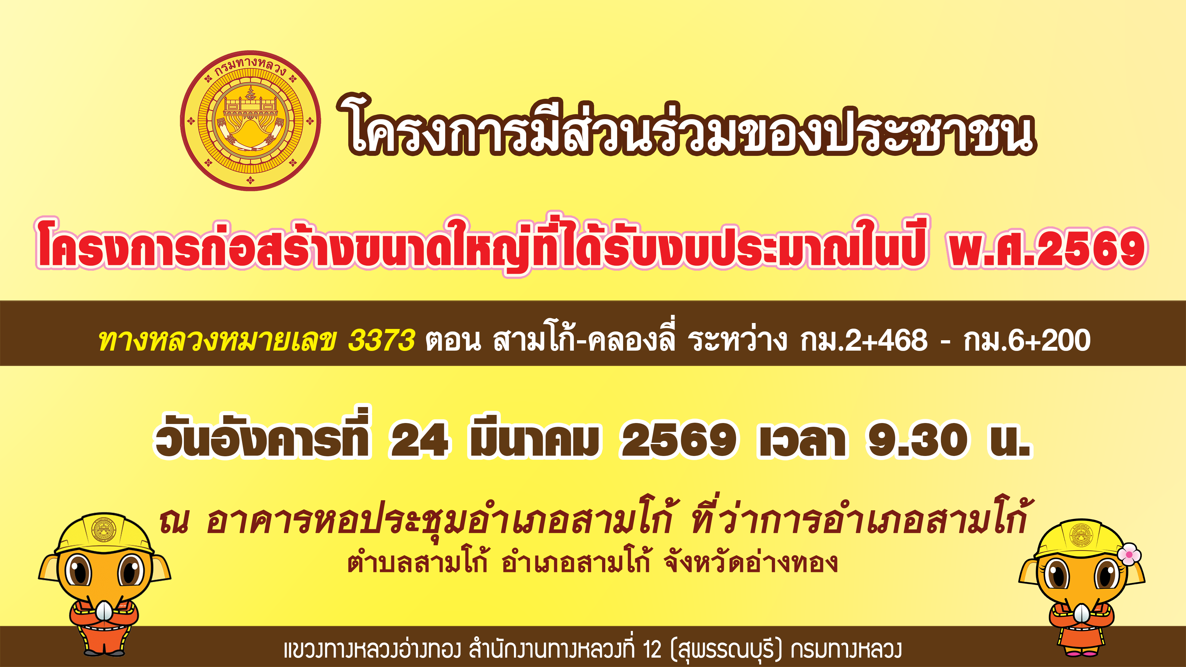 สรุปผลการดำเนินงานการมีส่วนร่วมของประชาชน โครงการก่อสร้างขนาดใหญ่ที่ได้รับงบประมาณในปี พ.ศ.2569 ทางหลวงหมายเลข 3373 ตอน สามโก้ - คลองลี่ ระหว่าง กม.2+468 - กม.6+200