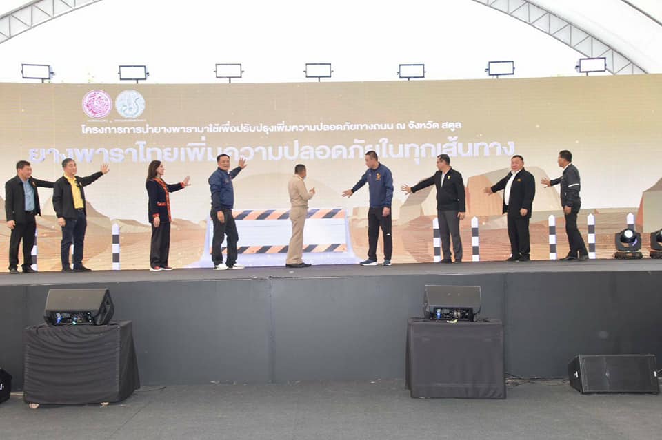 อนุทิน-ศักดิ์สยาม-มนัญญา เปิดโครงการนำยางพารามาใช้เพื่อปรับปรุงเพิ่มความปลอดภัยทางถนน (Kick Off) จังหวัดสตูล พร้อมชมการสาธิตขั้นตอนการผลิต “แผ่นยางธรรมชาติครอบกำแพงคอนกรีต” และ “หลักนำทางยางธรรมชาติ” ด้วยฝีมือคนไทย ตะลึง ราคายางพารา พุ่งทะลุ มากกว่า 60 บาทต่อกิโลกรัมแล้ว