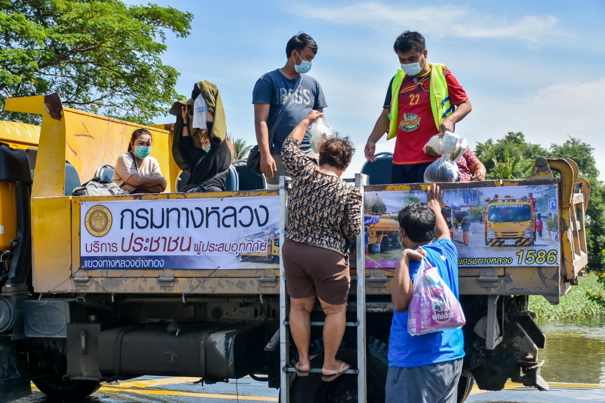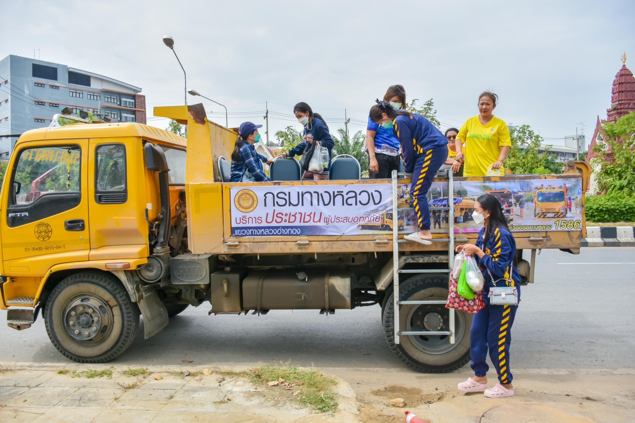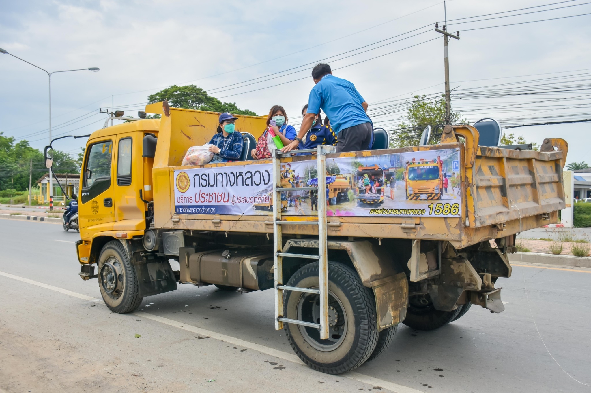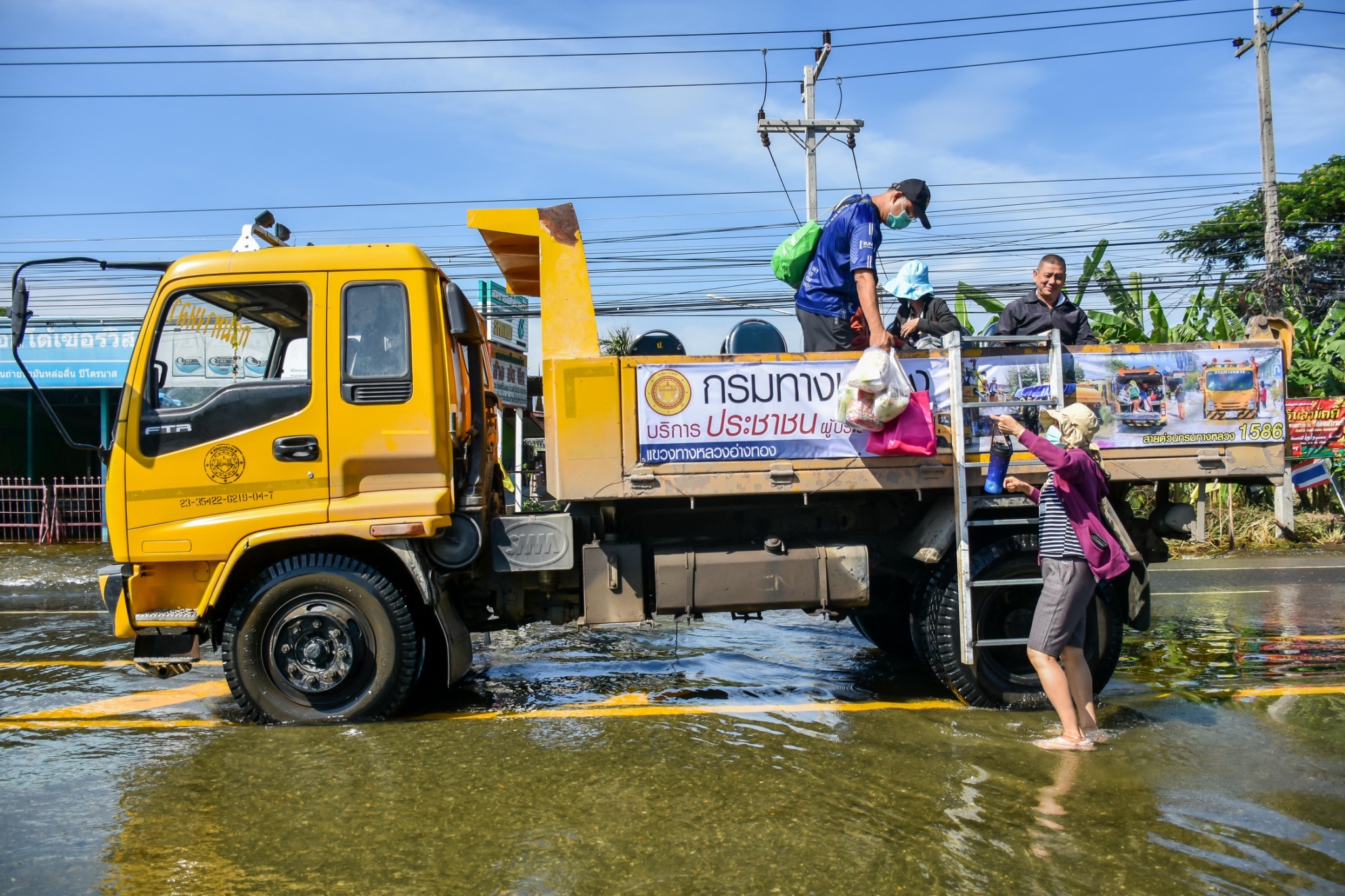 แขวงทางหลวงอ่างทอง จัดริการ รถรับ -ส่ง ประชาชนที่ประสบปัญหาน้ำท่วม