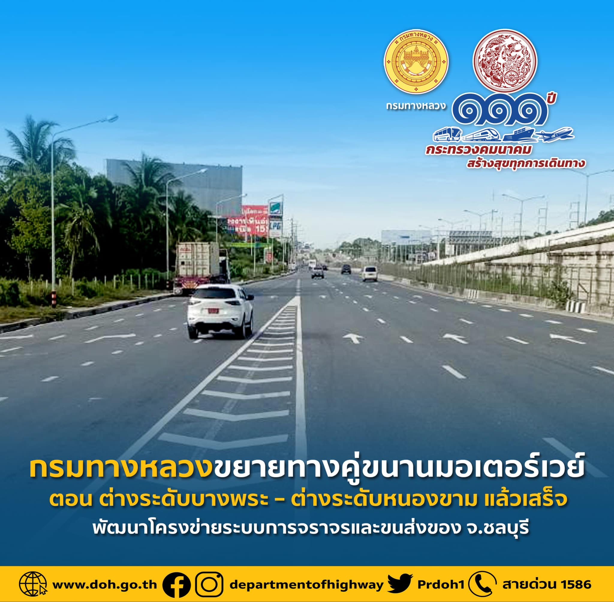 กรมทางหลวงขยายทางคู่ขนานมอเตอร์เวย์ ตอน ต่างระดับบางพระ – ต่างระดับหนองขาม แล้วเสร็จ พัฒนาโครงข่ายระบบการจราจรและขนส่งของ จ.ชลบุรี