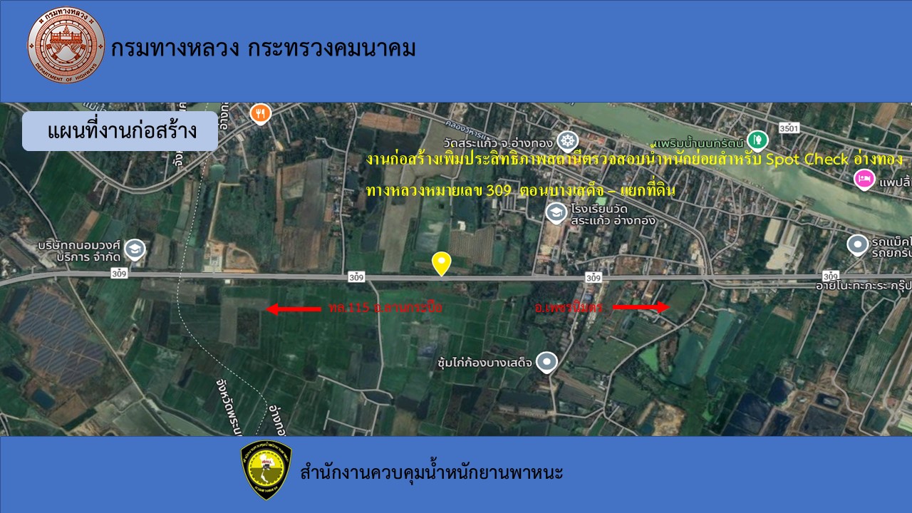 แจ้งเบี่ยงการจราจร งานก่อสร้างสถานีตรวจสอบน้ำหนักย่อยสำหรับ Spot Check อ่างทอง ทางหลวงหมายเลข 309 ตอน บางเสด็จ – แยกที่ดิน จ. อ่างทอง