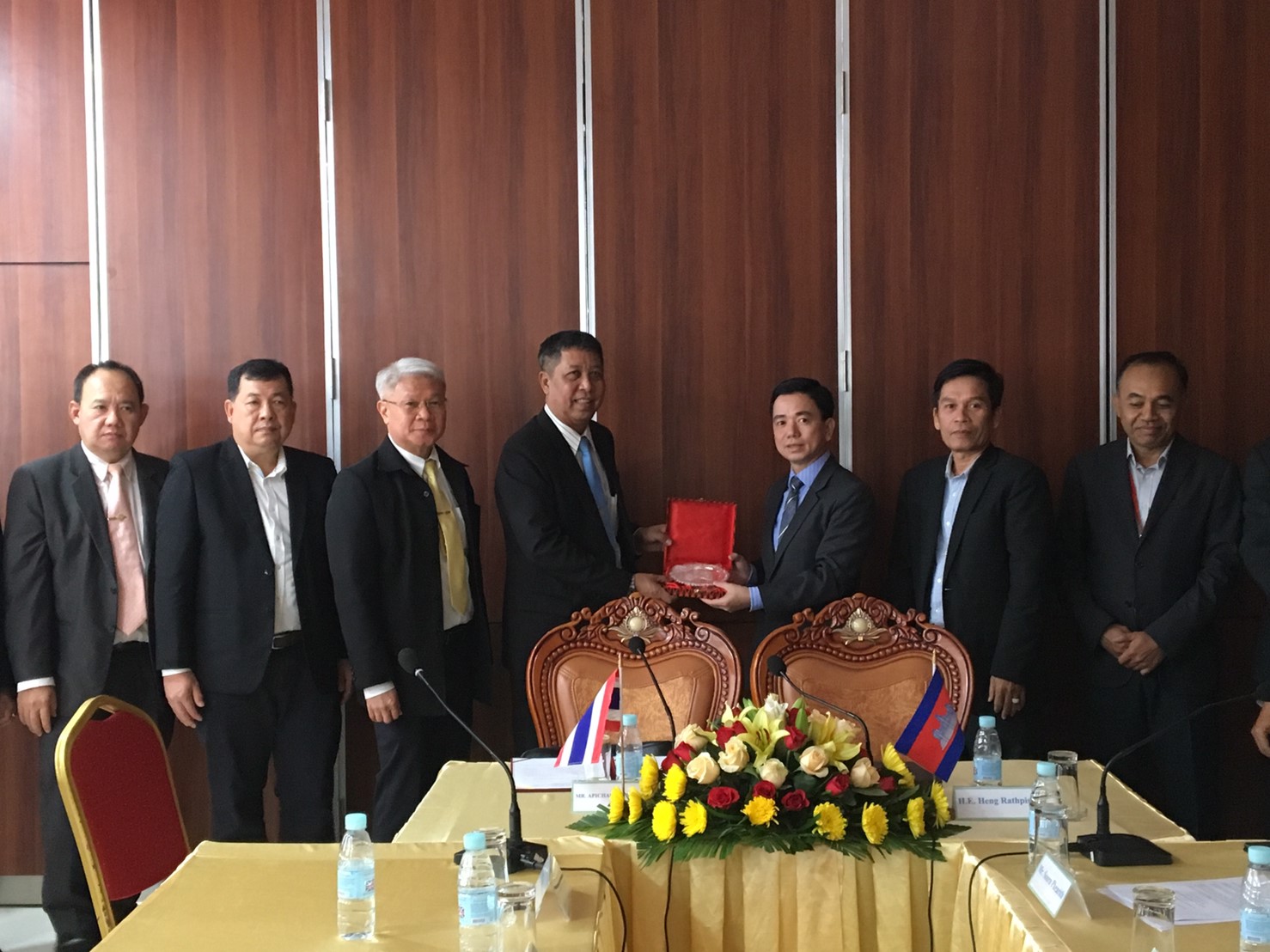 การประชุมคณะกรรมการจัดทำร่างความตกลงว่าด้วยกรรมสิทธิ์ การใช้ การบริหาร และการบำรุงรักษา สะพานมิตรภาพไทย-กัมพูชา (บ้านหนองเอี่ยน-สตึงบท) ร่วมไทย - กัมพูชา ครั้งที่ 2 ณ กระทรวงโยธาธิการและขนส่ง กรุงพนมเปญ ราชอาณาจักรกัมพูชา ฝ่ายไทยนำโดยนายอภิชาติ จันทรทรัพย์ รองอธิบดีฝ่ายวิชาการ นายปริญญา แสงสุวรรณ วิศวกรใหญ่ด้านควบคุมการก่อสร้าง นายดนัย เรืองสอน ผู้อำนวยการสำนักบริหารโครงการทางหลวงระหว่างประเทศ นายอิทธิวัตร์ กฤษณะวณิช ผู้อำนวยการสำนักก่อสร้างสะพาน นายจิระพงศ์ เทพพิทักษ์ ผู้อำนวยการสำนักงานทางหลวงที่ 10 นายปิยะ ชูตินันท์ รองผู้อำนวยการสำนักบริหารโครงการทางหลวงระหว่างประเทศ พร้อมคณะ ประชุมร่วมกับฝ่ายกัมพูชา นำโดย H.E. Heng Rathpiseth อธิบดีกรมโยธาธิการ กระทรวงโยธาธิการและขนส่ง และคณะ